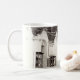 Diese Weiß-Keramik-Tasse kennzeichnet ein Bild von trullis in Alberobello, Puglia, Italien