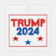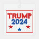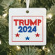 Trump 2024 Weihnachtsdekoration mit roter und blauer Typografie und festlichen Sternen.