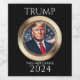 Elegante Imitate-Gold-Grenze mit einem einzigartigen digitalen Bild von Donald J. Trump mit amerikanischer Flagge im Hintergrund. Klassische Sammlungsfähigkeit der Präsidentschaftswahlen 2024 für Sammler. Perfekte Kundgebung für republikanische Unterstützer, Wahlkampfveranstaltungen und Gastgeschenke. Dieses Bild wurde mit voller kommerzieller Lizenzierung für den Weiterverkauf erstellt.