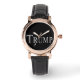 Uhr, Klassische Damenuhr mit schwarzen Lederarmband
