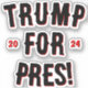 Zeigen Sie mit diesem Trump für Pres! Aufkleber, den Sie überall platzieren können, Unterstützung für Ihren Präsidentschaftskandidaten.