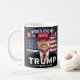 Portrait von Donald Trump, mit einem blauen Anzug, einer roten Krawatte und einem roten "Maga"-Hut. Der Hintergrund ist eine amerikanische Flagge. Das Etikett lautet "Präsident 45-Maga-47 Trump Future VP 48-49". Eine politische Erklärung des Spaßes, die Donald Trump als VP unterstützt.