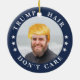 Geh selbst Trump! Unser Foto-Ornament ist ein unglaublich witzig Urlaubsgeschenk für Trump-Anhänger und Hasser gleichermaßen. Ersetzen Sie einfach das Beispiel-Foto durch Ihr eigenes, und wählen Sie "Klicken Sie, um sich weiter anzupassen", um sowohl Ihr Foto als auch den gelben Trump-Combover für eine perfekte Passform neu zu positionieren. Eine marineblaue, kreisförmige Grenze trägt die Worte "Trump haar, kümmere dich nicht", die mit patriotischen Sternen geschmückt sind. Doppelseitiges Design wiederholt sich rückwärts.