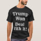 Dieses schwarze T-Shirt enthält Text, der lautet: Trump Won Deal With It!