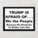 Text: Trump hat Angst vor . . . Wir Menschen, weil wir zu Bullies stehen wie Ihn wie gezeigt: schwarzer Text auf einem weißen Hintergrund mit einem schwarzen Rahmen. Anpassbar an Ihre bevorzugten Farben und Ihren eigenen Text.