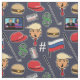 Dieses politische Muster deckt viele (aber nicht alle!) der Schwächen der Amtszeit von Präsident Trump ab - Dollarzeichen, Käseeburger, Diätkühlen, Golf, Twitter und Fake-Nachrichtenkabelfernsehen. Russische Fahnen und rote Hüte flattern mit diesen Dingen und Donald Trumps Gesicht, um ein lustiges Muster zu bilden, an dem sich nie Trumper schnüffeln wird. Sie können die Hintergrundfarbe ändern, indem Sie auf die Schaltfläche Anpassen klicken.