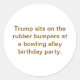 Trump sits on the rubber bumpers at a bowling alley birthday party. Conscious Splash-Art Social-Commentary sticker-design by Jeff Hankamer at Artjunkhaus