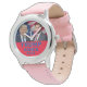 Kinderuhr aus Edelstahl mit rosa Lederarmband