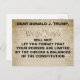 Donald Trump, wir, die Menschen werden nicht gelassen, Sie vergessen, dass Ihre Power durch die Karo und Gleichgewichte in der Verfassung begrenzt sind. Am 12. Februar 2017 sagte der leitende Berater von Präsident Stephen Miller: "Die Power des Präsidenten zum Schutz unseres Landes sind sehr substanziell und werden nicht hinterfragt werden", und dies in Anlehnung an das Vorbringen, das der US-Staatsanwalt beim 9. Berufungsgericht des Circuit vorgebracht hat und das von ihm abgelehnt wurde. Erinnern Sie den Präsidenten daran, dass er kein Diktator ist und den Karos und Gleichgewichten der US-Verfassung unterliegt, und wir, das Volk, Schauspiel einzeln und gemeinsam, werden seinen Power und seine Autorität weiterhin infrage stellen. Text im Hintergrund der US-Verfassung: Lieber Donald J. Trump, Wir, die Menschen werden nicht vergessen, dass Ihre Power durch die Karos und Gleichgewichte der Verfassung eingeschränkt sind.