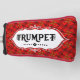 Trompet in dekorativem Text gegen ein Schwarz-Weiß-Emblem ist ein einzigartiges Geschenkdesign für Messingmusiker, Lehrer und Studenten in Jazzband, Konzert und Marching Band.