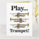 Trumpet Player Trumpeter Musician Card originally designed by Nisha Prabhu. Celebrate the music lover in your life with our Trumpet Player Card, available on Zazzle! This beautifully designed card showcases vibrant illustrations of trumpet. The dynamic artwork captures the passion and energy of trumpet playing, making it the perfect choice for any occasion. Inside, there’s ample space for your heartfelt message, allowing you to express your thoughts in a personal and meaningful way. Whether you're sending birthday wishes, congratulations, or simply a note of appreciation to a musician or music aficionado, this Trumpet Player Card adds a special touch that resonates with creativity and joy.