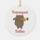 Do you love the trumpet? Show your trumpet pride with this fun ornament that features a cute brown cat playing the trumpet and the text trumpet tribe in pink letters.