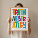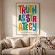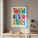 A bold typographic statement about clarity and conviction. “Truth as Strategy” isn’t decoration — it’s a mindset. Strong, hand-shaped letterforms bring energy, contrast, and individuality into the composition, creating a vibrant and expressive visual presence. The bold color palette turns the message into a striking focal point while maintaining a structured layout. Designed in a 3:4 format for balanced proportions. Available sizes: 12×16, 15×20, 18×24, 24×32, 30×40 inches. Works as a focal point or within a gallery wall — ideal for living rooms, offices, or creative spaces. Colors may vary slightly due to screen settings. Frame not included.