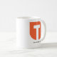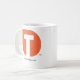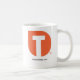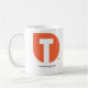 Kaffee-Tasse mit der des Tims Ikone StrategieTeardrop "T" auf zwei Seiten mit URL unten
