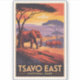 Tsavo East vector artwork design. Tsavo East National Park, one of Kenya’s largest and oldest parks, is famed for its vast savannas, red-dusted elephants, and spectacular wildlife sightings.