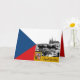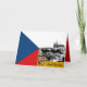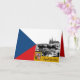 Karte: Patriotische tschechische Kunskarte mit historischem zeichn von Prag mit der dominierenden Prager Burg / St. Vitus Kathedrale zusammen mit tschechischer Fahne, Emblem - Liebe mein Land, Vatertag, Feiertagsgruß, Jubiläum, Hochzeiten. Praha - das Herz Europas.