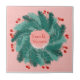 Original Illustration einer dekorierten Weihnachtsfichte und Kiefernäste mit roten Beeren und Schnee Sprichwort Veselé Vánoce, was in Tschechien Frohe Weihnachten bedeutet. In modernen korallenroten Pfirsich- und dunklen Minzfarben.