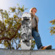 Skateboard-Version des Kunstwerks ''Meal-Czech'' Bildfiguren und abstrakte Objekte in Schwarz und Weiß. Keine Bedeutung ist es zu suchen, sondern kann in jeder Ecke gefunden werden.