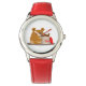 Kinderuhr aus Edelstahl mit rotem Lederarmband
