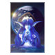 Traurige Tränen der Göttin des Lichts, Fandia. Hinter ihr steht die Welt der Erde, wie sie in den Silver Dolphins Saga ist. The Silver Dolphins Saga, © Arisdale Arts, Michele Scott Artwork digital von Michele Scott bemalt