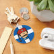 Leiter des Griechischen Evzone (tsolias) Cartoon, mit rotem Fetisch. Altgriechische Flagge Hintergrund. Benutzerdefinierter Text zurück.