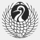 Ein stilisierter weißer Kran auf schwarzem Hintergrund. Das japanische Wort für Krane ist Turu, ein Symbol für Langlebigkeit und Glück für die Japaner