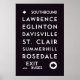 Toronto Transit Commission rollsign Art Poster. Die U-Bahn hält an der U-Bahn-Linie Yonge. Liste der Stationen auf Plakat: "Southbound" Beschilderung, Lawrence, Eglinton, Davisville, St. Clair, Summerhill, Rosedale, "Ausfahrt und Busse" Beschilderung.