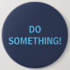 Das Round-Button-Button zeigt hellblau auf dunkelblauen Buchstaben und liest: "Tu ETWAS!" Demokraten, Liberale, Progressive müssen abstimmen! Machen Sie politisch und erheben Sie Ihre Stimme. Genau wie Michelle Obama sagt.