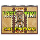 Der Tiki-Kalender des Veteranen-Künstlers Keith Tucker. Die Tiki-Kultur, auch bekannt als polynesischer Pop, kam in den 1930er Jahren erstmals in die USA. Es ist ein einzigartiges Ableger, das zum Teil von Tiki-Schnitzereien und Mythologie der Polynesier, Hawaiianer und Südseeinseln inspiriert wird, obwohl die Verbindung locker und stilistisch ist.