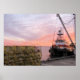 Das ist eine Szene aus Plymouth, Massachusetts bei Sonnenaufgang. Der Hafen wird gerade ausgebaut, und im Hafen gibt es Schlepper und Schleppboote.