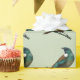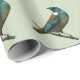 Eine gemalte Abbildung eines neuseeländischen Vogels. Das ist eine Tui. Tui sind Singvögel mit einem weißen Federn unter ihren Köpfen, daher ist es englischer Name, der Pason-Vogel. Der NZ-Vogel steht auf einem Ast und wird in einem gestörten Stil gezeichnet.