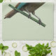 Eine gemalte Abbildung eines neuseeländischen Vogels. Das ist eine Tui. Tui sind Singvögel mit einem weißen Federn unter ihren Köpfen, daher ist es englischer Name, der Pason-Vogel. Der NZ-Vogel steht auf einem Ast und wird in einem gestörten Stil gezeichnet.