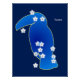 Die Tukan-Sternzeit mit weißen Sternen und ihrem griechischen Buchstaben auf der Figur des Vogels in blauem Gras.