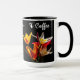 Ein Haufen farbiger, sonnenbeleuchteter Tulpen in gelben, roten, lila Farbtönen auf beiden Seiten der Tasse. Text: Liebe, Blume & Kaffee am oberen Rand. Funny personalisierbare Kaffee-Tasse für jeden. Sie können Bilder ändern und alle Texte ändern oder löschen.