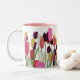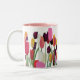 Tulip farbenfrohe Blume Floral Tulip Zwei-Tone-Kaffee-Tasse entworfen von Nisha Prabhu. Mit unserer farbenfrohen Tulpenblütenkaffee-Tasse fügen Sie Ihrem Morgenprogramm einen Farbtupfer hinzu! Dieses lebendige Zwei-Töne-Design besticht durch eine schöne Auswahl an Tulpen, die Ihren Tag mit jedem Schluck aufheitern. Diese Tasse ist perfekt, um Ihr Lieblingsgetränk in stilvollem Ambiente zu genießen. Sie ist sicher eine hervorragende Ergänzung zu Ihrer Küchenware-Sammlung. Ein tolles Geschenk für alle Blume- und Gartenfreunde!