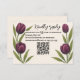 Delikate Tulpen blühen auf dieser RSVP-Karte in einer anmutigen Anzeige von Gelassenheit und Charme. Die Vorderseite des Gebäudes vereint die Blumenkunst elegant mit funktionellem Design und integriert nahtlos einen diskreten QR-Code. Freuen Sie sich auf eine Touch modernen Komforts inmitten der botanischen Schönheit. Im Gegenteil, ein zeitloses Monogramm in Verbindung mit dem Hochzeitstermin begründet das Design in Intimität und sinnvollem Detail. Das Ergebnis ist ein taktiler Sake, der Tradition mit Innovation verbindet und sich perfekt für ein anspruchsvolles Fest eignet.