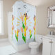 Dieses Kunstwerk vereint Gelb- und Rosatolen, Vögel, Schmetterlinge und gelbe Sonnenstrahlen auf einer ruhigen himmelblauen Leinwand und schafft eine ruhige, naturlich inspirierte und farbenfrohe Eleganz, die einen eleganten Duschvorhang bildet.