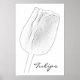 Das elegante Schwarz-Weiß-Tulip-Sketch-Poster Print ist eine einzigartige Geschenkidee für Blume-Liebhaber, Gärtner oder Floristen. Dieses hübsche Blumenposter zeichnet sich durch ein digital erweitertes botanisches Foto einer Tulpenblüte der Blume im Frühjahr aus.