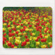 Ein ansprechendes Foto aus roten und gelben Tulpen, die von der Sonne in den Gorsedd Gardens, Cardiff, Wales wieder beleuchtet werden.