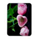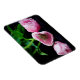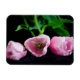 Ein Stillleben Foto von frisch geschnittenen rosafarbenen Tulpen, mit langen grünen Stielen, auf schwarzem Stoff abgesetzt. Copyright ©Kimberly J Tilley.