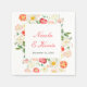 Pretty wedding paper napkin with tulips, daffodils and other flowers. Perfect for a spring or summer wedding. The words can be changed to suit your own details or requirements