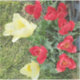 Ein 3"x3" Custom Cut Vinyl Aufkleber, mit einem schönen Bild von Rot und Gelb Tulips darauf. Matte White =Media.