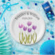 Lila Tulips-Blume. Garten. Lila Blumen Hochzeiten Teller. Lila blumengeschmückte Wildblumen Aquarell. Ideal für Hochzeiten, Brautparty, Babydusche. Rustikales lila Blumengemälde. Original Aquarellmalerei von Monika Howarth.