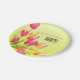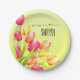 Schöne Aquarelltulips Bouquet-Kunst mit einem Namen Monogramm und einer kurzen Nachricht mit einem frisch sonnigen Hintergrund. Atemberaubende, realistische Aquarellkunst: Personalisieren Sie die Namensänderung für Monogramm und Text.