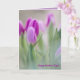 Die Vorderseite dieser eleganten Karte hat ein nahes Bündel von lila Tulpen mit verschwommenem Hintergrund und den Worten Happy Mother's Day, und innen hat ein wunderbares Zitat einer unbekannten Person, um Mama Ihre Liebe und Wertschätzung zu zeigen: Für die Welt, die Sie eine Mutter sind, aber für Ihre Familie sind Sie die Welt.