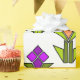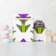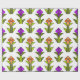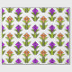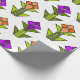 Dieses Verpackungspapier hat ein Art Deko-Design aus Diamanten, Dreiecken und Polygonen gemacht Tulpen in orange und lila mit grünen Stielen und Blätter.
