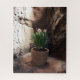 Die in einem geprägten Tontopf gepflanzten Tulpen werden in einer Grotte gerahmt, die von oben nach unten mit Licht durchquert wird. Die robuste, raue Textur kontrastiert mit den glatten Blätter der kräftigen Tulpenblüten.