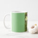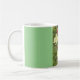 Eine klassische Tasse mit einem Bild von Tulips und einem hellgrünen Hintergrund.