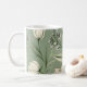 Tulips mit Blätter auf hellgrün Kaffeetasse