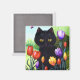 Tulips Niedlich Black Cat Butterfly Creationarts Magnet